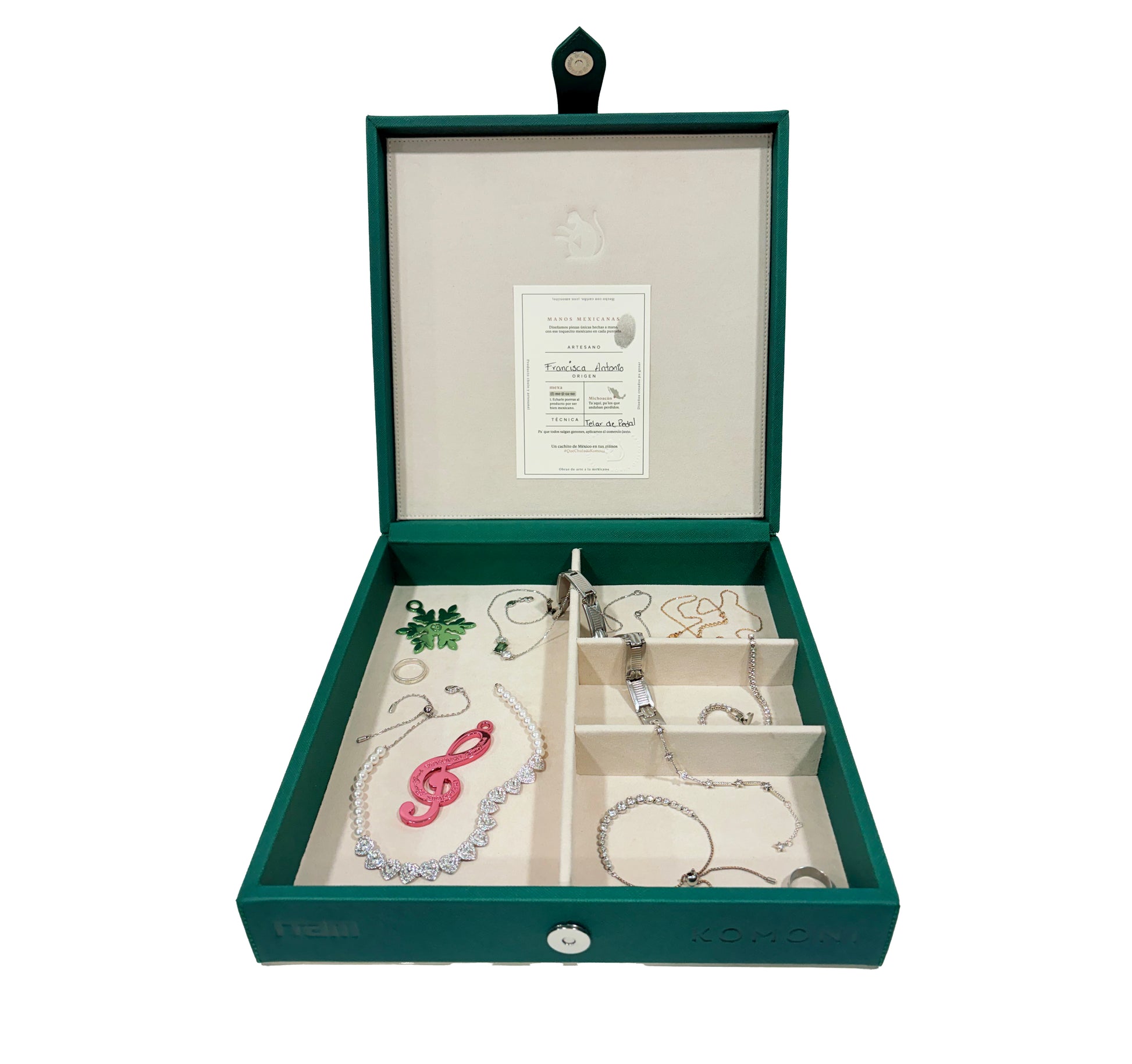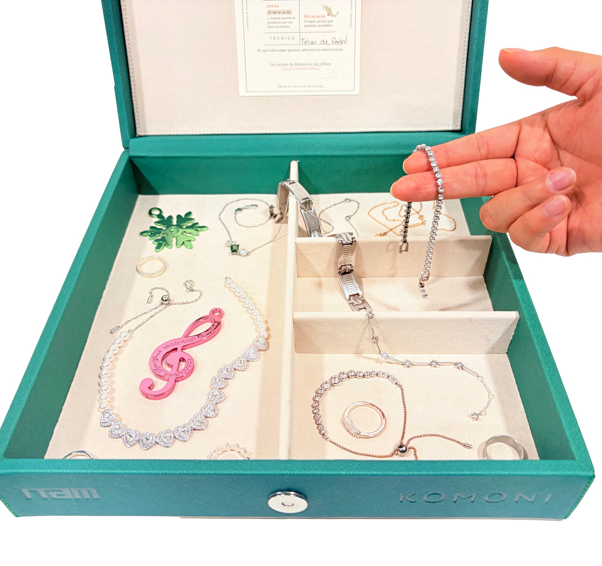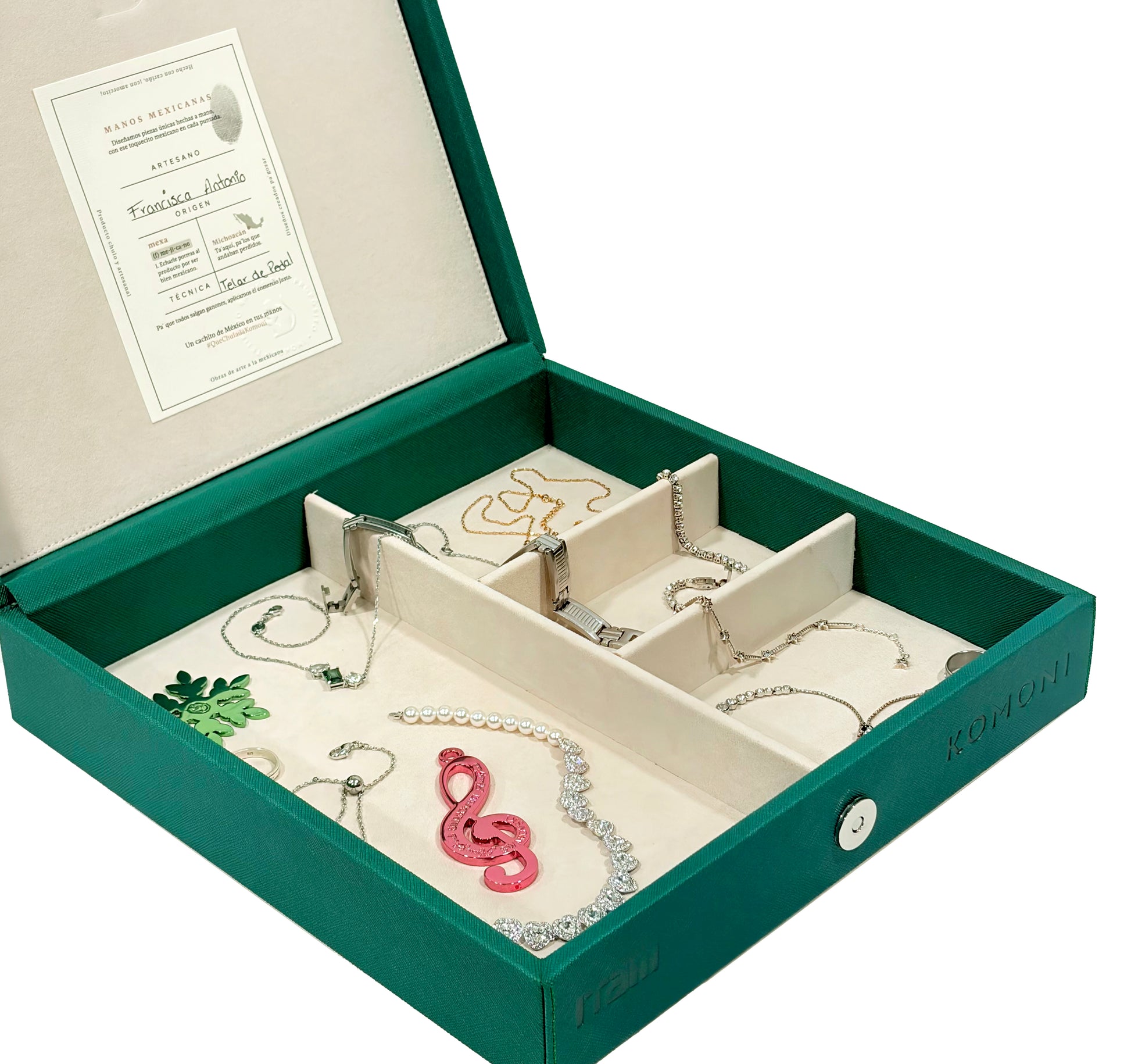 Guarda tus prestigiosas gemas en este joyero komoni. Embellece tu armario.